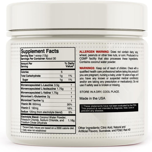 Vegan Ginger Lime BCAA Electrolyte Powder for Muscle Recovery - All Natural Pre Post Workout Supplement - 30 Servings