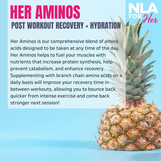 NLA for Her Her Aminos Maui Pineapple BCAA Amino Acid Blend - 30 Servings, Supports Endurance, Lean Muscle, Hydration, Recovery - Vegan, GF, Low Calorie