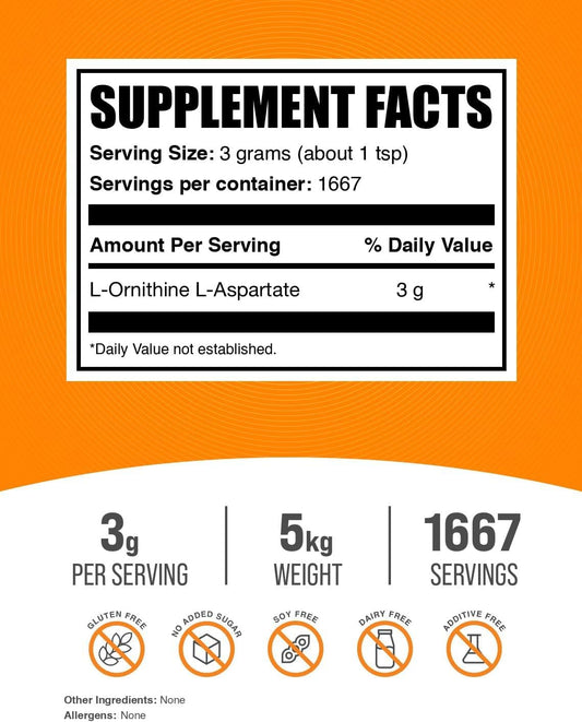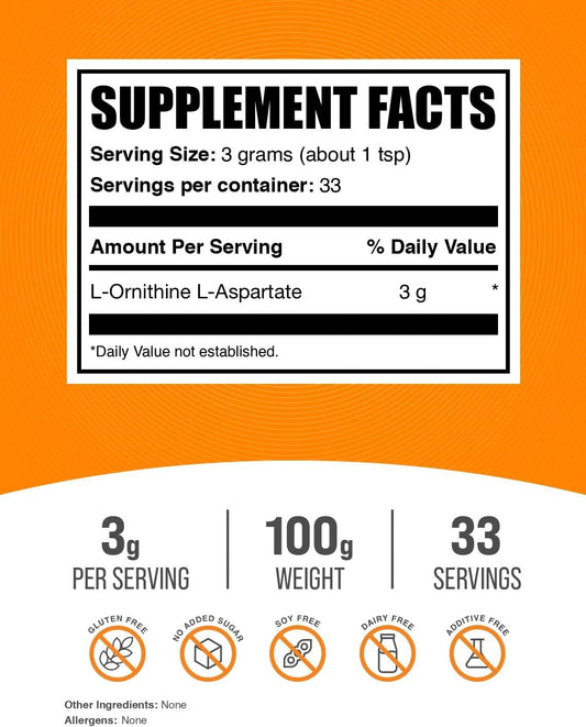 BulkSupplements.com L-Ornithine L-Aspartate Powder - Amino Acid Supplement, Gluten Free, 100g (3.5 oz)