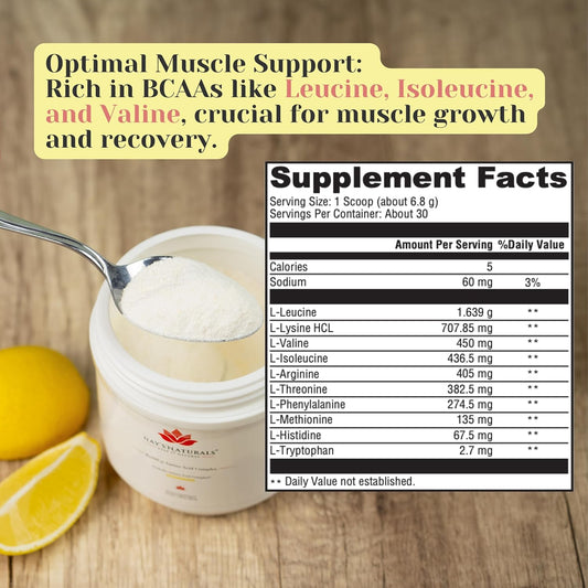 Hay's Naturals BuildUp - Amino Acid Complex for Lean Muscle Growth & Recovery | BCAA Powder with Essential Aminos | Natural Lemon Flavor | 30 Servings