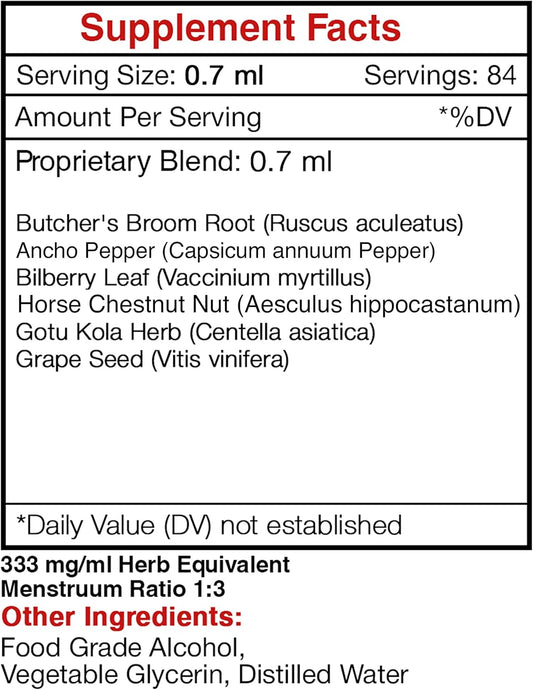 Organic Varicose Vein Herbal Extract Tincture with Butcher's Broom, Horse Chestnut, Bilberry, Cayenne, Gotu Kola, and Grape for Healthy Leg Support - 2 OZ Bottle