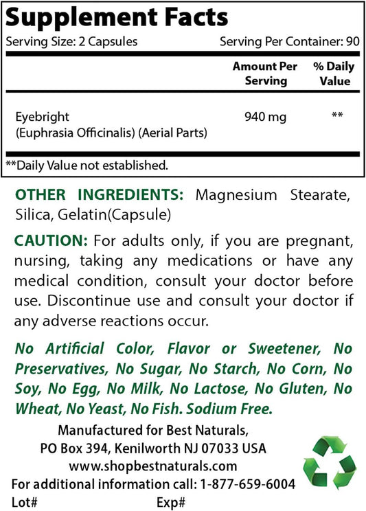 High Strength Bilberry Extract & Eyebright Capsules - 1000mg Bilberry & 470mg Eyebright for Eye Health