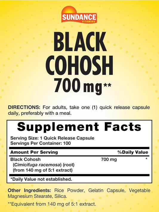 Sundance Black Cohosh 700mg Capsules | 100 Quick Release | Non-GMO Gluten Free Herbal Supplement