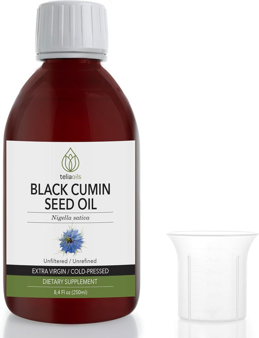 Teliaoils Premium Grade Black Seed Cumin Oil - 100% Pure, Cold Pressed, Rich in Omega Fatty Acids and Polyphenols - For Skin, Nails, Hair - Powerful Antioxidant - 250 ml
