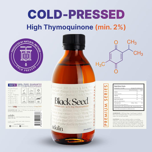 8.4 fl oz ADALIN Black Seed Oil Liquid - High Thymoquinone, Cold Pressed, Glass Bottle - Vegan, Gluten Free Nigella Sativa Seed Oil