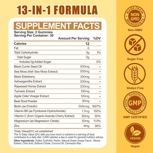 All-in-1 Shilajit Sea Moss Ashwagandha Gummies with Black Seed Oil - Immune and Energy Support for Men & Women