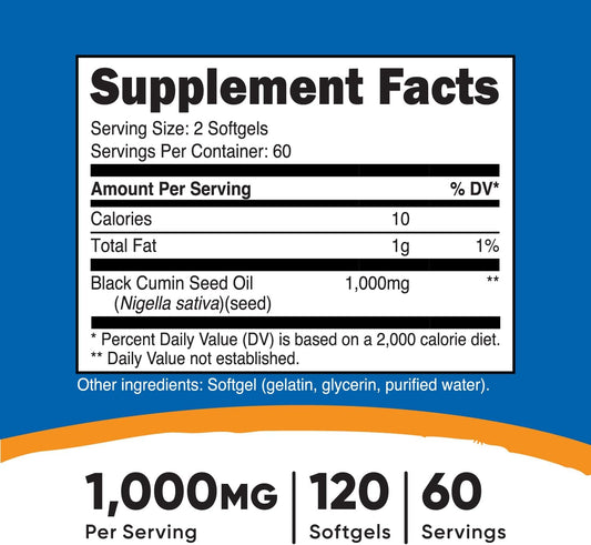Nutricost Black Seed Oil Softgels - Cold Pressed, 1000mg Per Serving, Omega 3 6 9 Source - 120 Softgels, Non-GMO, Gluten Free