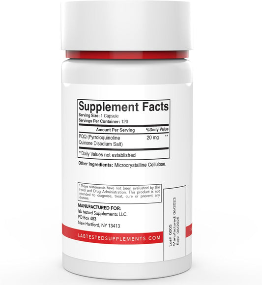 High-Quality PQQ Supplements: 120 Capsules, 20mg - Lab Tested with 3rd Party COA - 4 Month Supply