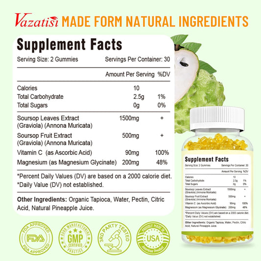 Organic Soursop Graviola Gummies 2 Pack - Cell Support & Immune Boost - Pineapple Flavor - Sugar Free & Vegan