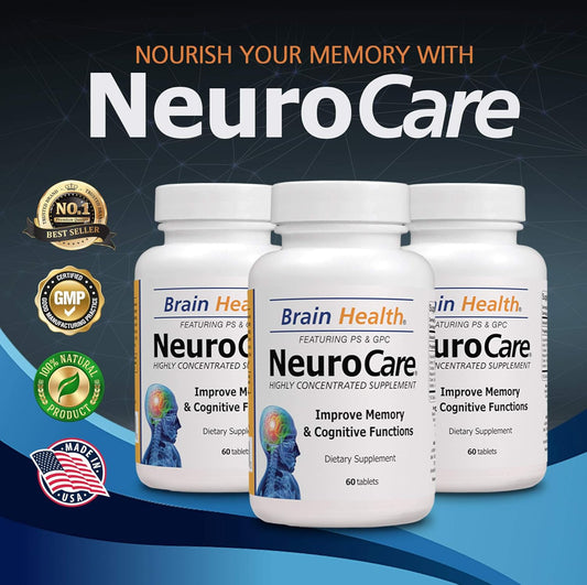 Organic Neuro Care Nootropic Brain Health Supplement for Memory, Focus & Clarity - Natural Dietary Supplement with Vitamins - 60 Tablets