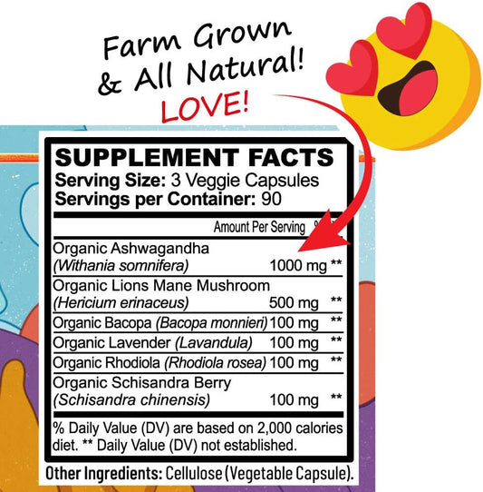 Organic Stress Relief Blend with Ashwagandha Root and Lion's Mane for Mood and Energy Support by Hippie Farms