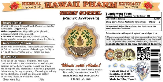 Organic Sheep Sorrel Liquid Extract - Herbal Supplement Tincture by Hawaii Pharm - 2 fl.oz - Made in USA