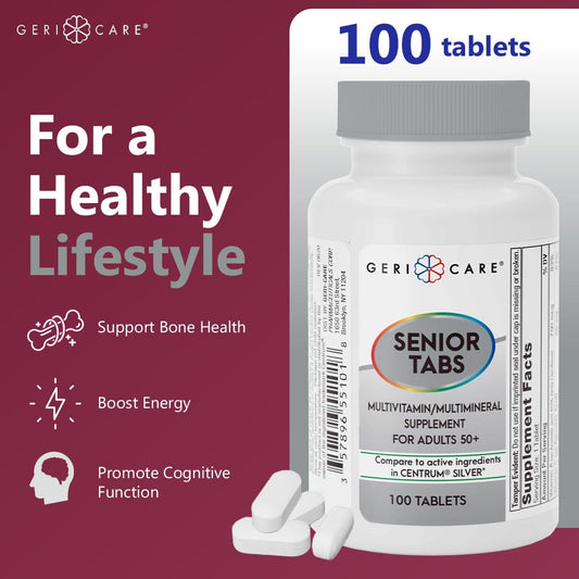 Set of 2 GeriCare Senior 50+ Multivitamin Tablets with Minerals for Immune Support and Age-Defying Nutrition - 100 Count