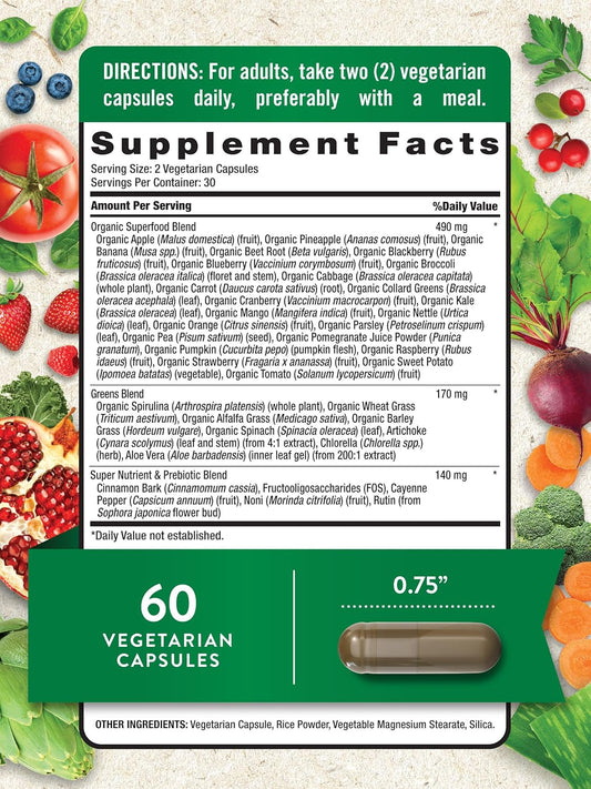 Vitalizing Antioxidant Superfood Formula | 60 Vegetarian Capsules | Non-GMO & Gluten Free