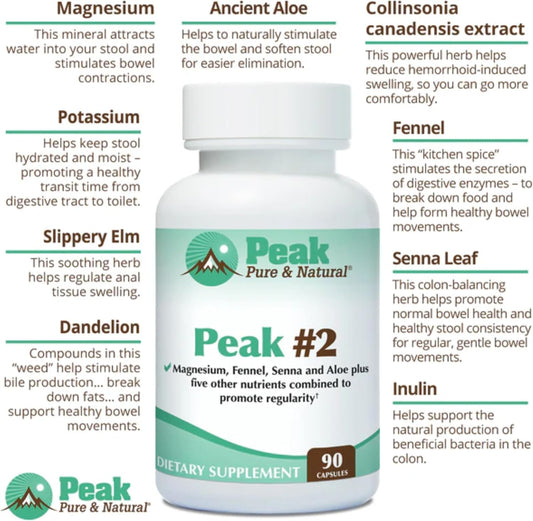 Peak Pure & Natural Bowel Movement Supplement with Magnesium, Fennel, Senna, Aloe - Promotes Digestive Support and Regularity - 90 Capsules