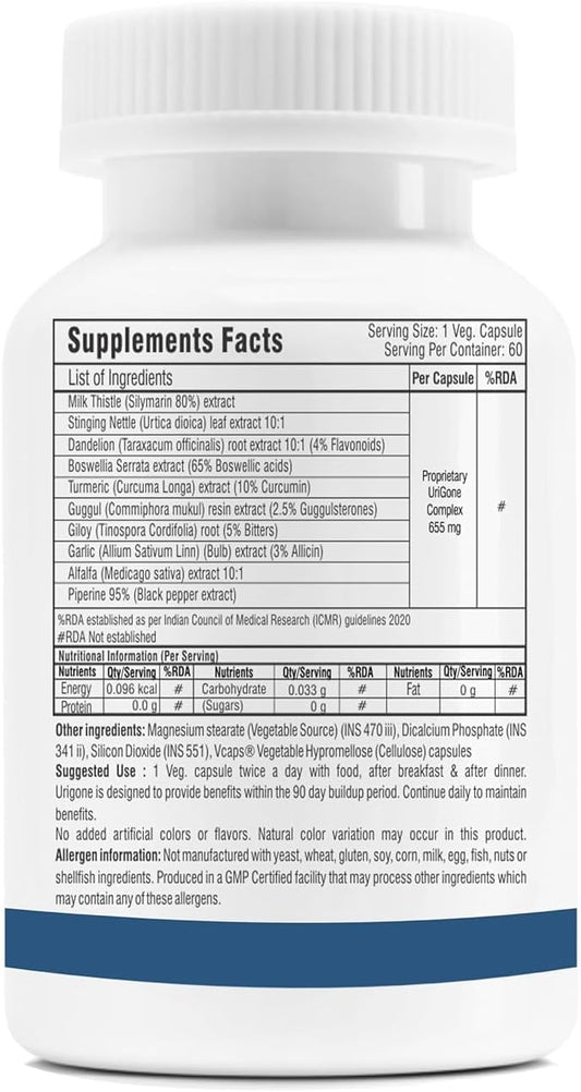 URIGONE Advanced Uric Acid Support Supplement - Natural Formula (60 Veg Caps)
