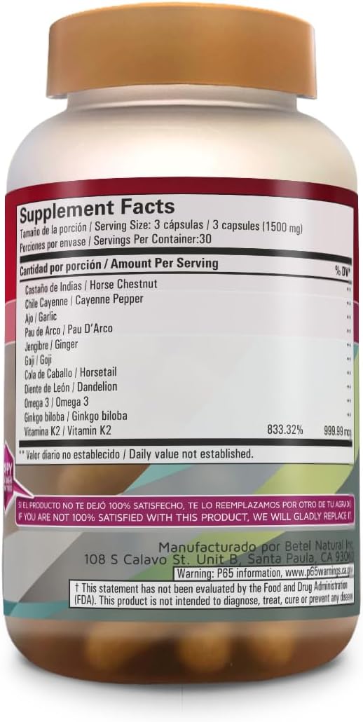 Betel Natural Circulamax Capsules - 90 Capsules - Support Healthy Circulation with Natural Ingredients