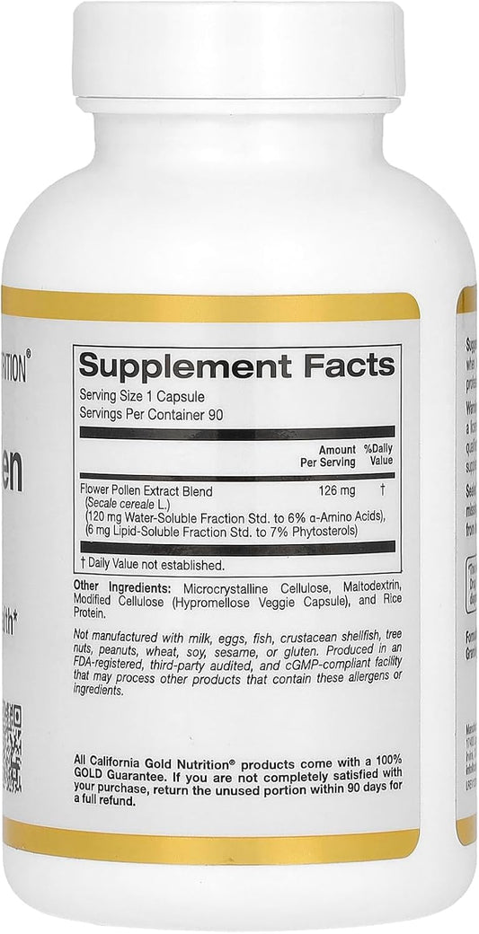 California Gold Nutrition Flower Pollen Extract Capsules - 90 Vegetarian Capsules for Natural Wellness