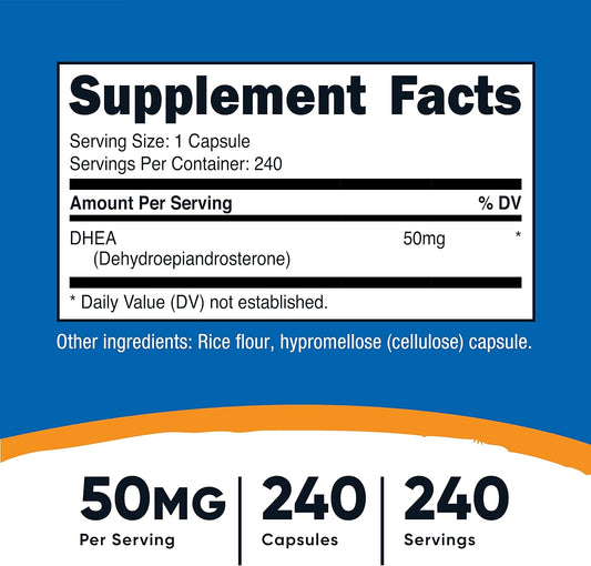 Nutricost DHEA 50mg Capsules - 240 Count, Gluten Free, Soy Free, Non-GMO Supplement