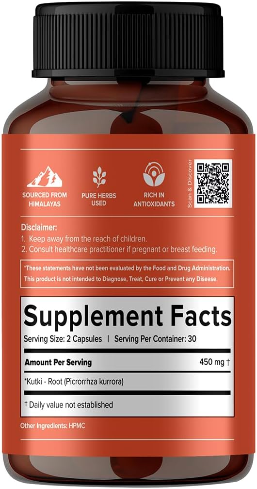 JIVA Ayurveda Kutki Capsules - 60 Natural Herbal Supplement Capsules