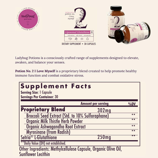 Natural Ladybug Potions Immune Support Supplement with Liposomal Setria Glutathione, Organic Ashwagandha, Sulforaphane, Myrosinase, Milk Thistle - 30 Capsules for Liver Health
