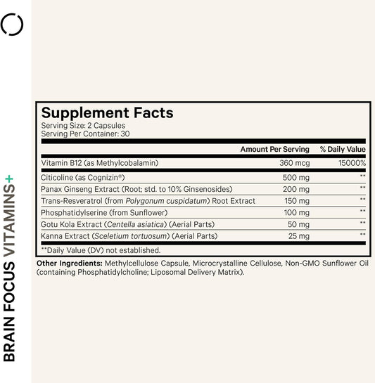 Codeage Brain Focus Nootropic Supplement with Citicoline Cognizin, Panax Ginseng, Resveratrol, Gotu Kola, B12 - Liposomal Delivery - 60 Capsules