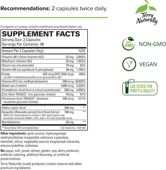 Terry Naturally Healthy Feet & Nerves Capsules - Supports Nerve Function in Feet, Legs, Hands - Non-GMO, Vegan, Gluten Free - 60 Servings