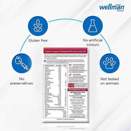 Men's Health Supplement 50+ - Supports Vitality, Reduces Fatigue - 30 Tablets