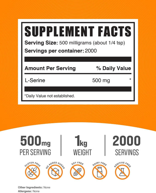 BulkSupplements L-Serine Powder - Amino Acid Supplement for Immune Support - Gluten Free, 500mg per Serving - 1kg (2.2 lbs) Pack