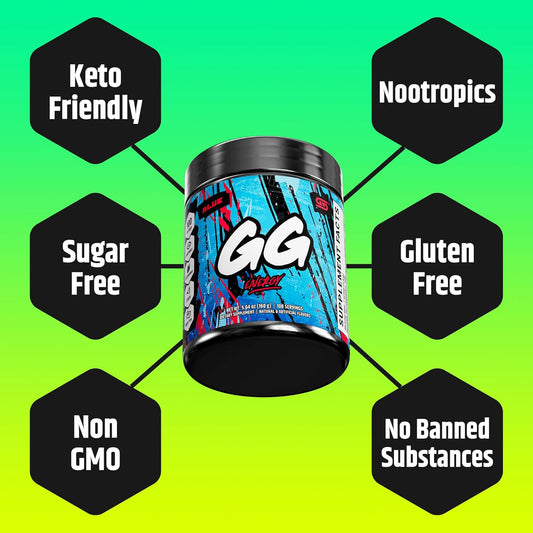 GG Energy Blue: 100 Servings of Keto-Friendly Gaming Energy Powder with Nootropics, Organic Caffeine, and Immune Support