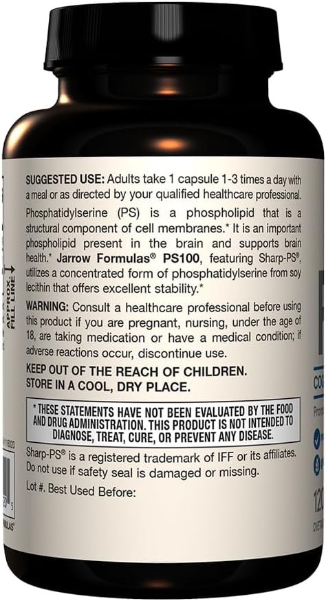 Jarrow Formulas PS-100 Phosphatidylserine Supplement - 100 mg - 120 Capsules for Memory and Cognitive Support
