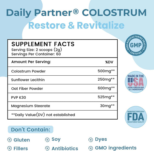 USA Grass-Fed Liposomal Colostrum Powder for Gut Health, Immune Support & Athletic Recovery - First Milking - 60 Servings