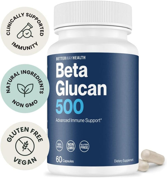 Highly Purified Beta Glucan Immune Support Supplement - 500mg Per Capsule - Pack of 1