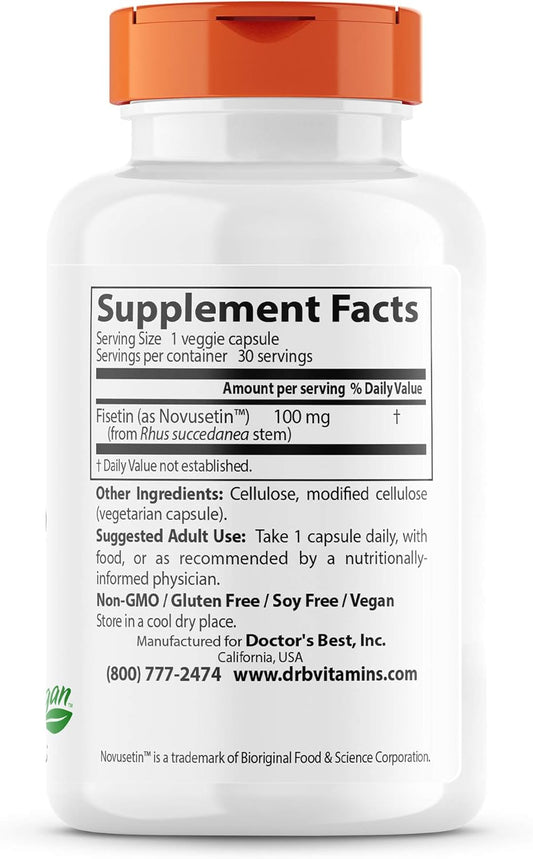 Non-GMO Vegan Fisetin with Novusetin Capsules, Gluten & Soy Free - 100mg, 30 Count
