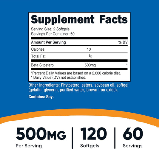 Nutricost Beta Sitosterol Softgels - 500mg, Non-GMO & Gluten Free - 120 Count, 60 Servings