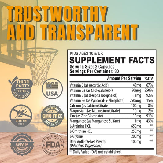 Natural Height Growth Supplement for Kids & Adults - Made in USA - Vitamins for Taller Boys & Girls - Multivitamin Capsules for Teen & Child Bone Growth - KTD BIOLABS Height Increase Booster