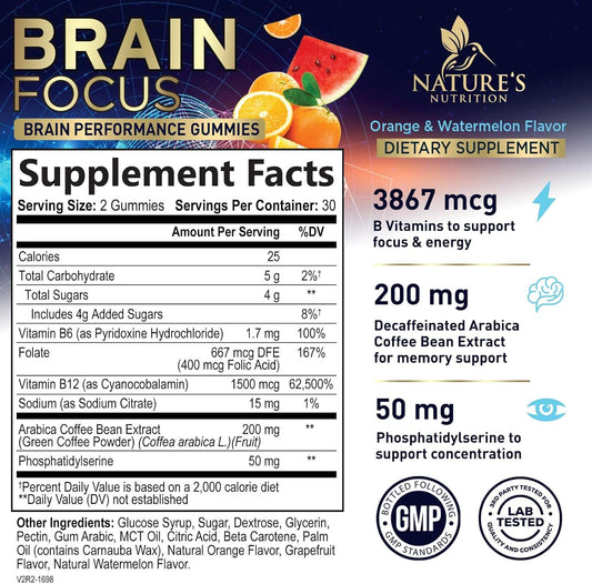 Memory & Focus Nootropic Gummies with B6, B12 & Phosphatidylserine for Brain Health & Cognitive Support - 60 Count