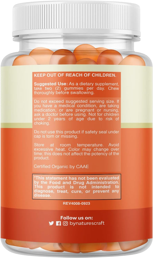 Organic Vegan Immune Support Gummies for Adults - Vitamin D3, Zinc, and Vitamin C Supplement - Gluten Free & Non-GMO - 60 Servings