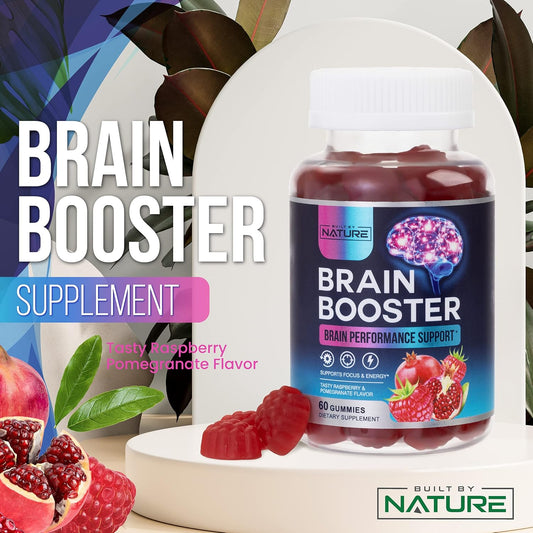 Natural Brain Booster Gummies with B6, B12, and Phosphatidylserine - Memory, Focus, Concentration - Cognitive Function & Energy Support, 60 Count