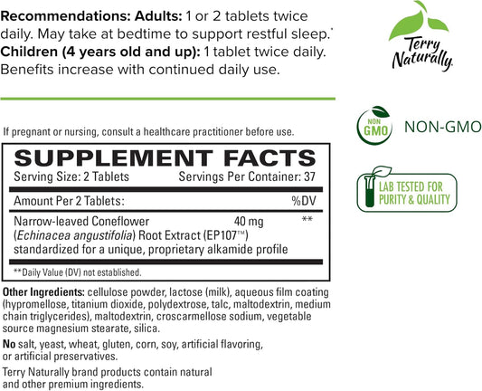 Terry Naturally AnxioCalm 75 Tablets Non-Drowsy Formula for Adults & Children 4+ - Non-GMO - 37 Servings