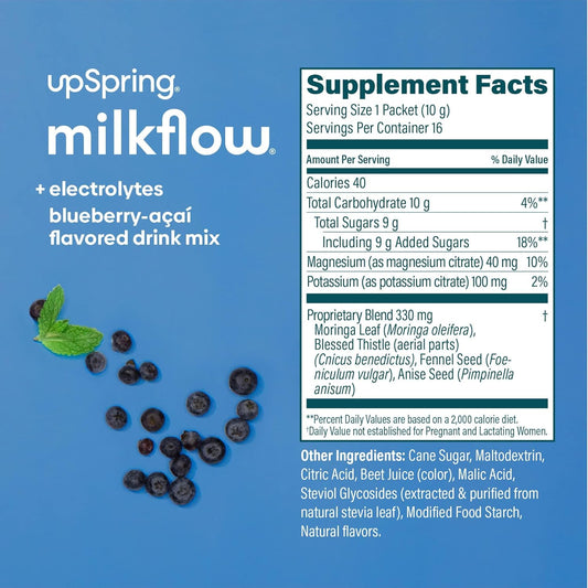Fenugreek-Free Electrolyte Breastfeeding Drink Mix with Moringa & Blueberry Acai Flavor for Lactation Support - 16 Mixes