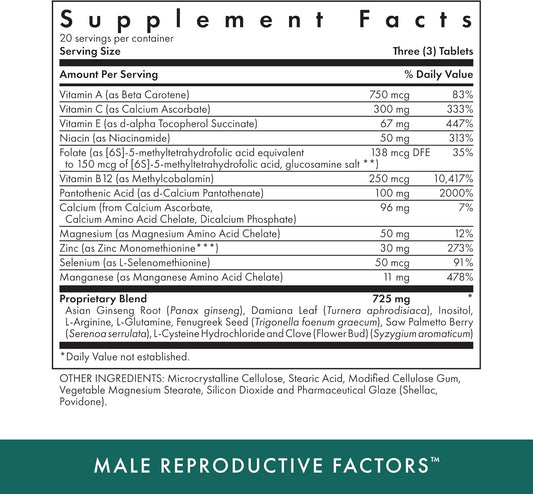 Michael's Health Male Fertility Support - 60 Vegetarian Tablets - Nutrients for Reproductive Health - Kosher - 20 Servings