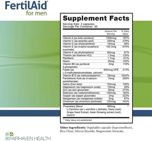 Fairhaven Health FertilAid for Men - 60 Day Supply, Male Fertility & Prenatal Vitamin with Maca, L-Carnitine, CoQ10, Methylfolate, Zinc, and VIT D for Support
