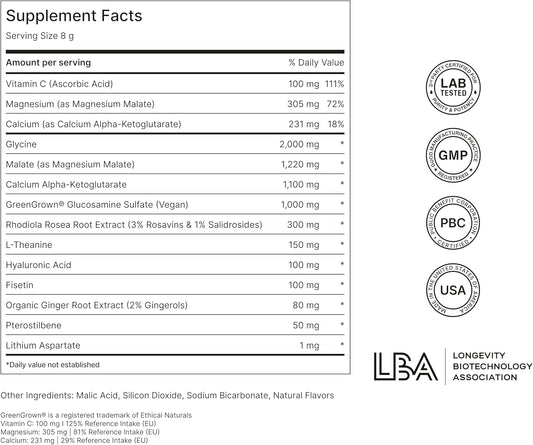Longevity Anti-Aging Drink Mix Powder Supplement with Magnesium, Vitamin C, Ginger - 30 Servings