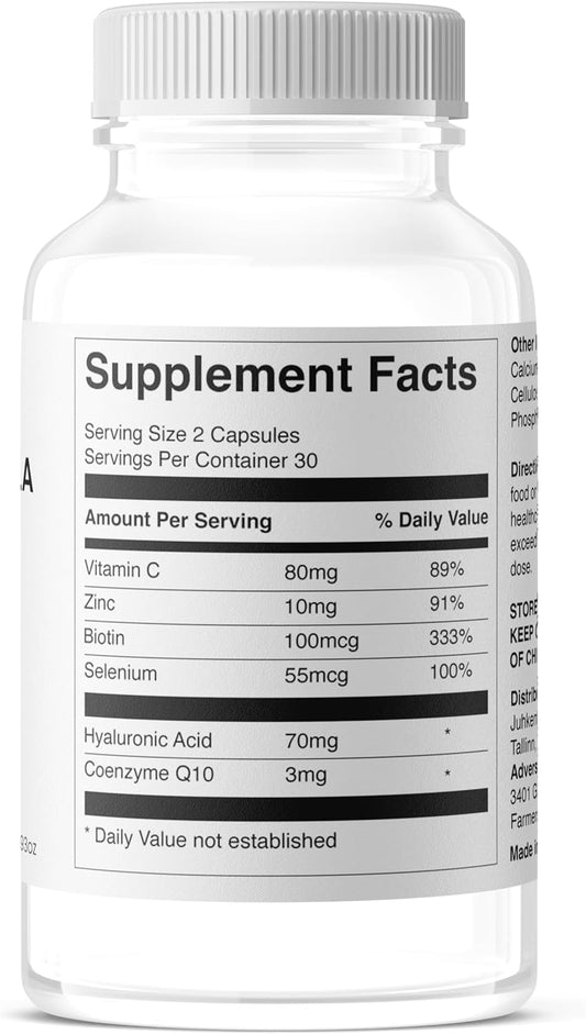 Anti Aging Skin Supplements for Women - Face Yoga Fabulous Skin Formula with Vitamin C, Biotin, Hyaluronic Acid, Zinc, CoQ10 - Reduce Wrinkles, Boost Hair Growth - Daily Skin Nourishment, 60 Capsules