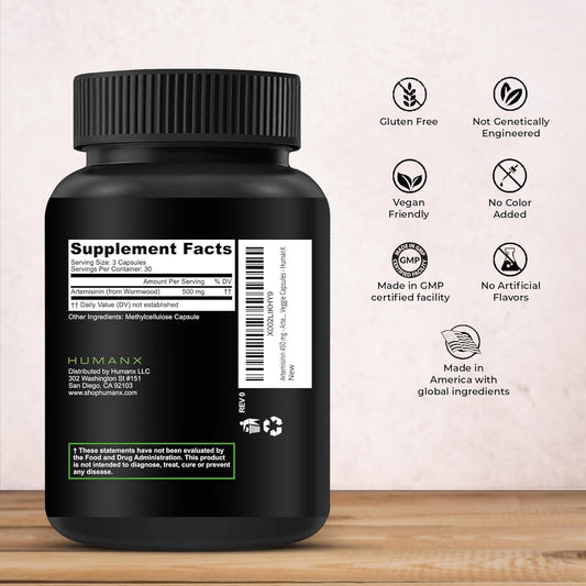 Artemisinin 500mg Supplement for Healthy Aging, Digestion, Immunity - USA Third Party Tested - Vegan, Non-GMO - Sweet Wormwood Extract Capsules