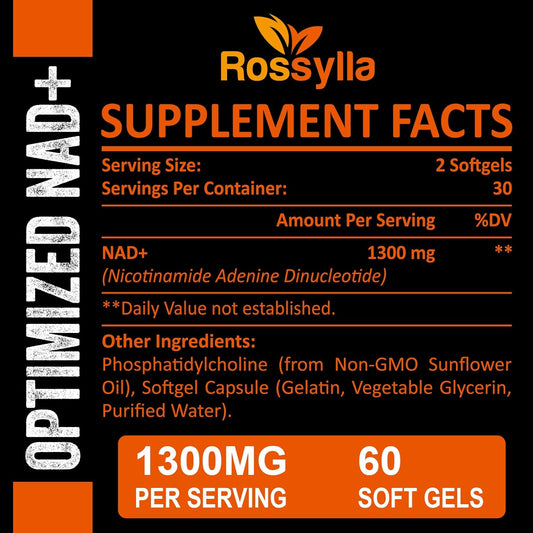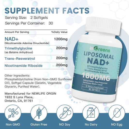 1200mg Liposomal NAD+ Supplement for Enhanced Absorption and Energy Support - 60 Softgels