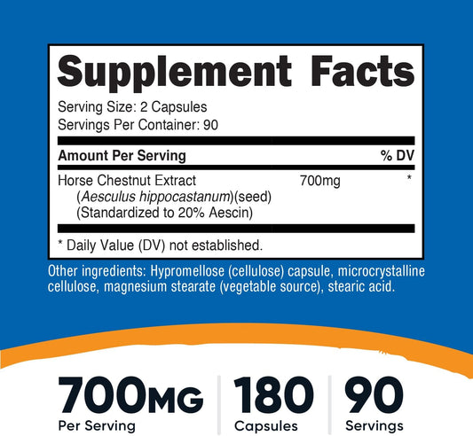 Nutricost Horse Chestnut Extract Capsules - 700 MG Per Serving - 180 Capsules, 90 Servings - Non-GMO, Vegan Formula