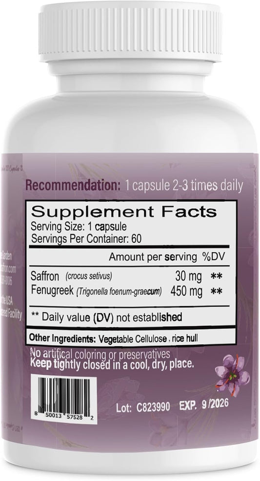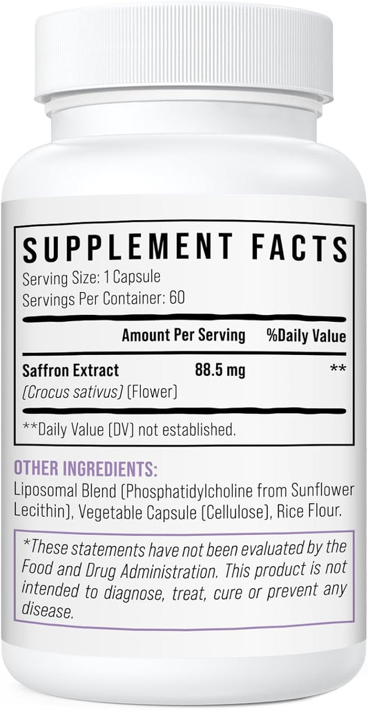Premium USA-Made Pure Saffron Extract Supplements for Mood, Focus, Digestion, and Eye Health - 60 Capsules for Men and Women