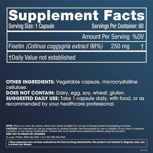 Pure Fisetin Capsules 750mg - Natural Supplement for High Dose Use - Triple Tested for Potency - GMP Certified (180 Capsules)